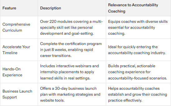 Accreditation ensures that the program meets industry standards and provides credibility. Many accountability coaching certifications lack accreditation, so potential students should consider enrolling in accredited programs for validation. Accrediting bodies such as the International Coaching Federation (ICF) and Continuing Professional Development (CPD) Standards Agency evaluate coaching programs to ensure they meet high standards.
