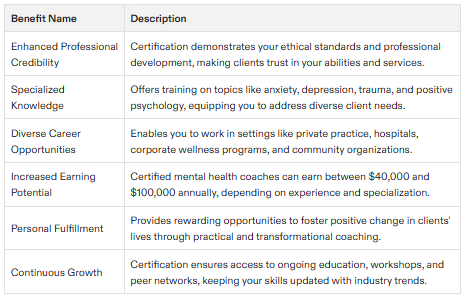 By choosing a reputable certification program and staying committed to ongoing education and professional development, mental health coaches can build a successful and fulfilling career.