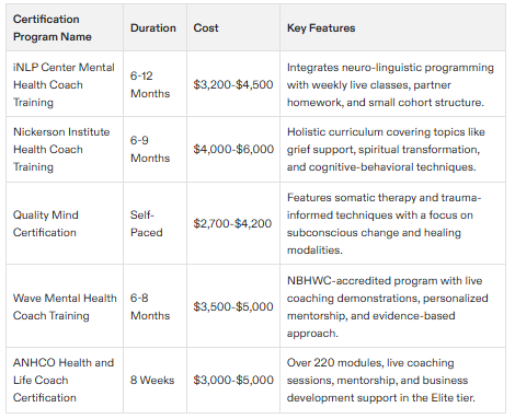 The iNLP Center offers a comprehensive Mental Health Coach Training and Certification program that integrates neuro-linguistic programming, equipping coaches with knowledge and skills to provide effective, transformational coaching.
