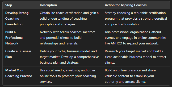 Building a successful coaching practice requires ongoing education, marketing, and professional development.