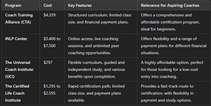 Offers a certified life coach program at a cost of $4,339.