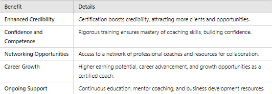 Obtaining a professional coach certification offers a multitude of benefits that can significantly enhance your coaching career. Here are some key advantages: