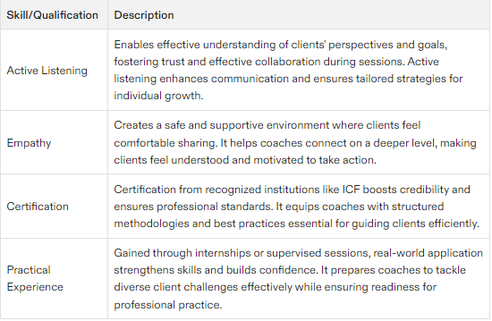 Accredited training programs and practical experience through internships are essential for aspiring life coaches to gain credibility and develop necessary skills.