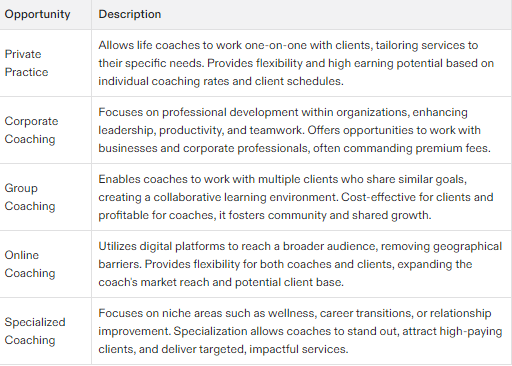 A career in life coaching offers a wealth of opportunities for growth and development, allowing you to make a significant impact on the lives of others while achieving your professional goals. Here are some exciting career paths and growth prospects to consider: