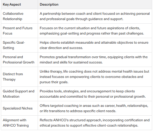 Life coaching is a collaborative partnership between a life coach and a client where the coach aims to propel the client towards their personal and professional goals.