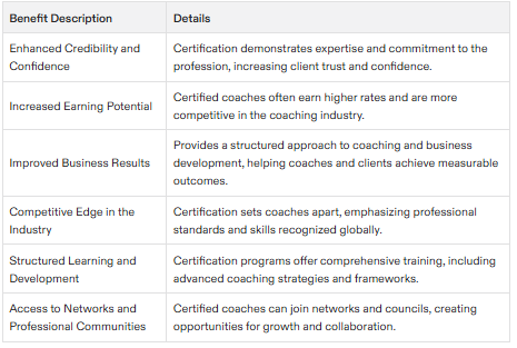 Business coaching certification increases earning potential by providing a competitive edge in the coaching industry.
