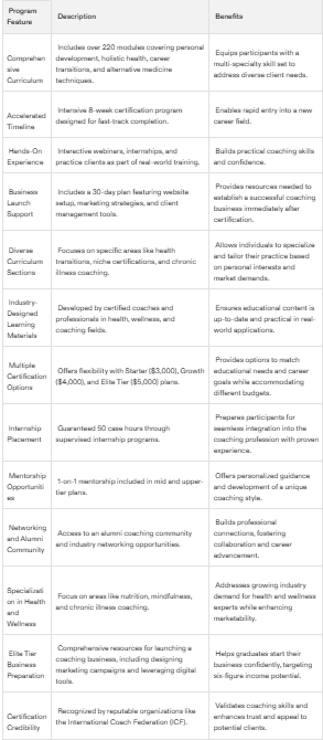 This program is ideal for those seeking a supportive and interactive environment to kickstart their coach training programs careers.