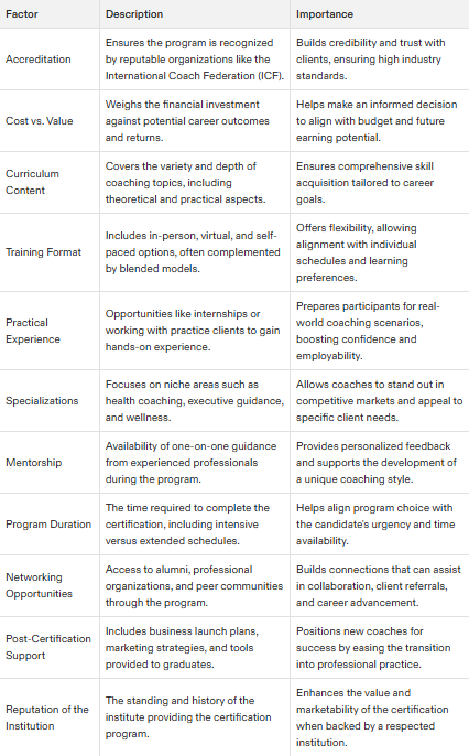 Choosing the right coaching certification involves considering factors like accreditation, costs, and training formats to align with personal career goals.