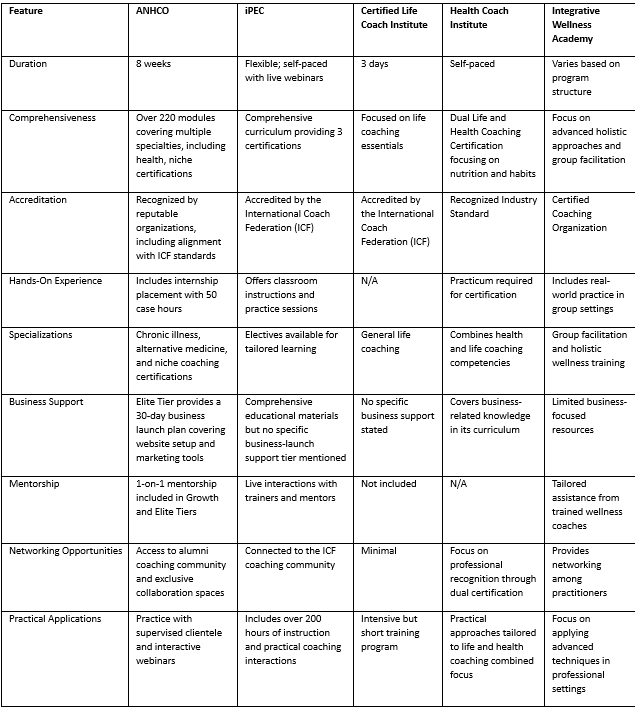 The ANHCO offers a Health and Life Coach Certification Program that can be achieved within an 8-week period, providing an immersive and concentrated educational journey into life coach certification.