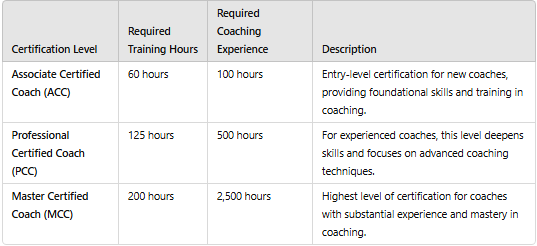 Professional Certified Coach (PCC): The PCC certification is the next step up, requiring at least 125 hours of coach-specific training and 500 hours of coaching experience. This level is ideal for coaches who have gained some experience and are looking to deepen their skills and knowledge.