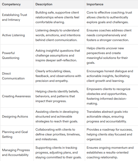 Learn the Core Competencies recognized by the International Coach Federation (ICF) and develop your unique coaching style.