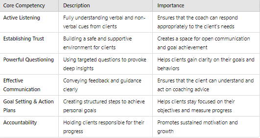 Powerful questioning techniques help evoke insights and promote self-discovery. Combined with direct communication and the ability to create awareness, these competencies enable life coaches to design actions, plan, and set goals effectively, helping clients achieve personal development objectives.