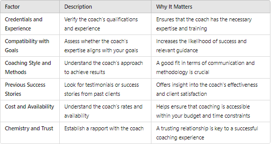 Evaluating a coach’s credentials, experience, and compatibility with your specific needs is crucial in ensuring a productive coaching relationship.