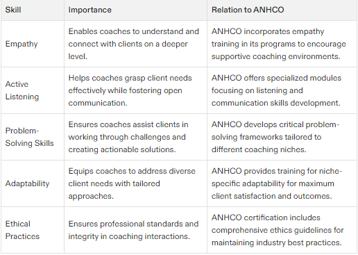 Essential skills for life coaches include empathy, effective communication, problem-solving, and flexibility to cater to diverse client needs.