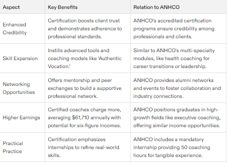 Certification enhances a coach’s credibility, skillset, career development, and earning potential, with graduates reporting high client satisfaction and successful business growth.