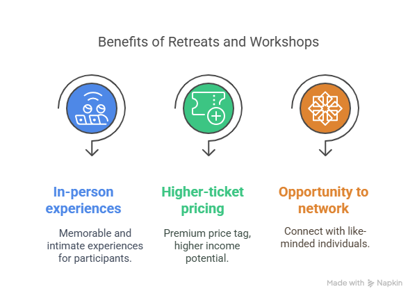 Retreats: Hosting retreats can be lucrative, with coaches charging anywhere from $500 to $5,000 per participant for multi-day events.