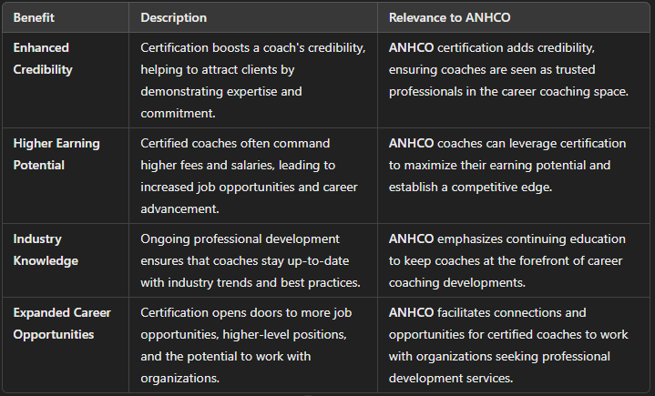 Obtaining a career coach certification is also not mandatory, but it can demonstrate professionalism, provide a competitive advantage, and enhance marketing efforts. These certifications show expertise and commitment to the profession.