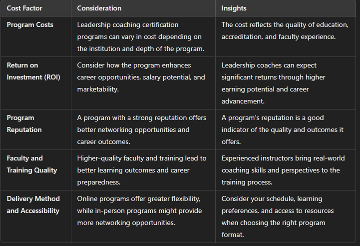 Leadership Coaching Certification Cost and ROI in Executive Coaching