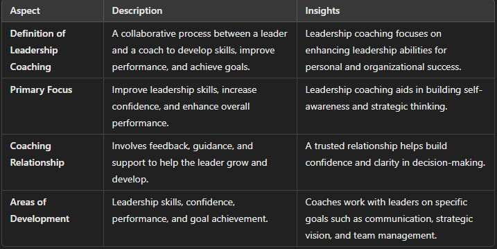 Leadership coaching, often referred to as executive and leadership coaching, is a process that helps leaders develop their skills and abilities to achieve their goals and improve their performance.