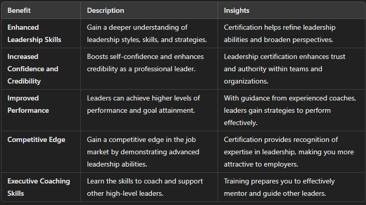 Upon completion, participants will receive a certificate of completion and be eligible to apply for ICF certification, positioning them as credible and skilled professional coaches ready to make a significant impact in the field of leadership coaching.