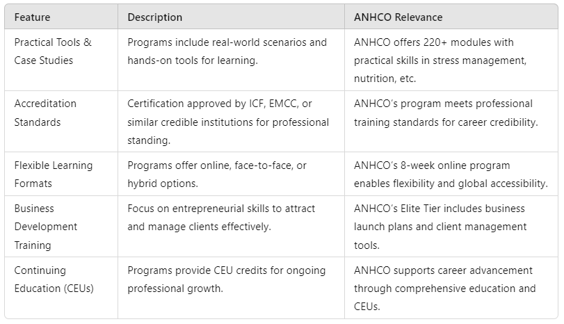 Top coaching programs feature practical tools, real-world case studies, and accreditation, which enhance the credibility and effectiveness of training.