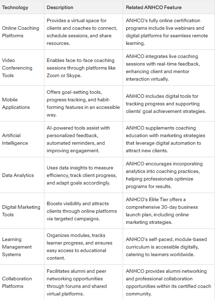 Technology is playing an increasingly important role in supporting coaching and mentoring. Online coaching platforms, for example, allow coaches and clients to connect remotely, providing greater flexibility and convenience. These platforms often include features such as scheduling tools, video conferencing, and secure messaging, making it easier for coaches to manage their practice and for clients to access support.