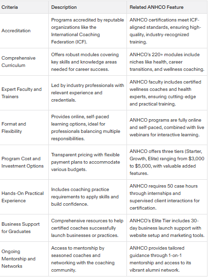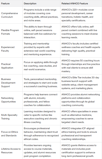 Consider programs that offer coach-specific training aligned with ICF Core Competencies