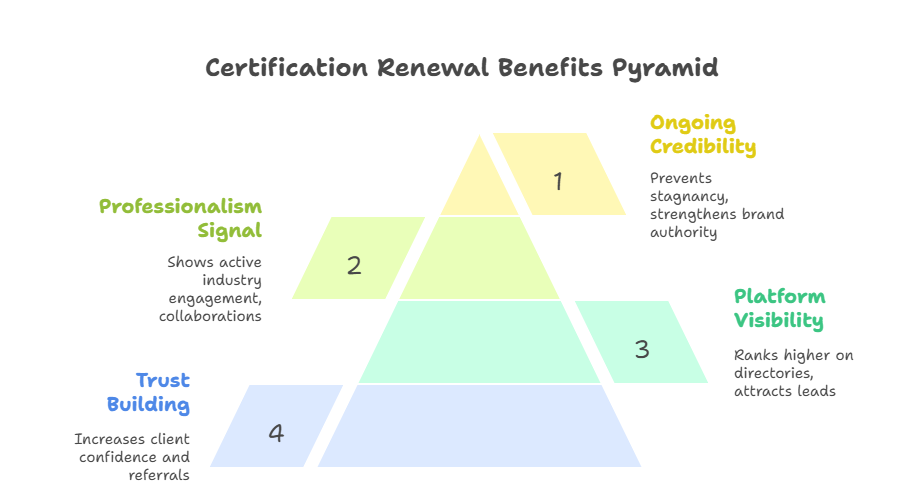 Certification isn’t static. In coaching, recency equals relevance. When your credentials are actively renewed, clients are more likely to trust your expertise—especially on platforms that showcase certification metadata. Coaching directories, course marketplaces, and client-matching services often flag expired certifications, which can immediately hurt your visibility. On platforms like Coach.me or Thumbtack, coaches with up-to-date credentials appear higher in search results and earn preference in algorithm-based recommendations.