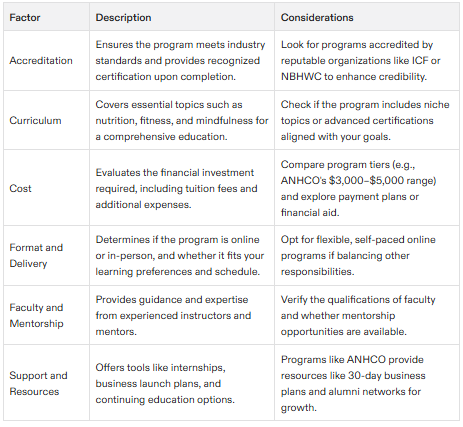 Selecting the right health coach training program is a crucial step in your journey to becoming a successful health coach. Here are some key factors to consider when making your decision: