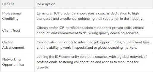 ICF credentials, including ACC, PCC, and MCC, enhance a coach’s professionalism and credibility in a competitive industry.
