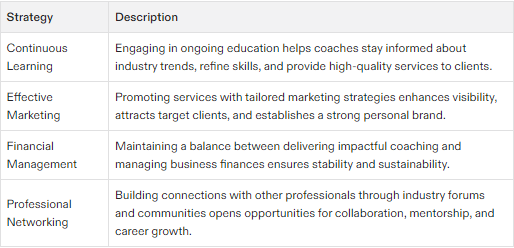 Continuing education, networking, and effective marketing are essential for building a successful coaching career beyond just obtaining credentials.
