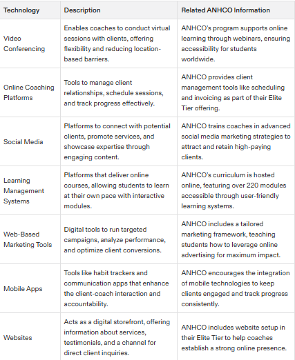 By utilizing technology, coaches can increase their reach, flexibility, and efficiency, providing high-quality coaching services to clients from anywhere in the world. Embracing these tools can enhance the coaching experience and support the growth of a successful coaching practice.