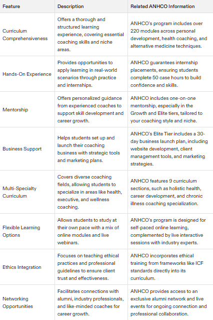 Consider a program that offers a comprehensive curriculum, including training in coaching mindset, goal setting, and advanced techniques for transformative growth.