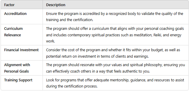 Your personal goals and niche are critical considerations when selecting a certification program. Choosing a program that aligns with your coaching objectives and specific spiritual beliefs is crucial. This ensures that the training you receive resonates with your unique aspirations and coaching style.
