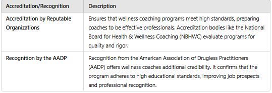 This recognition can be particularly beneficial for wellness coaches as they enter the job market. Employers and clients often look for certifications and recognitions from reputable organizations as a mark of quality and professionalism. By completing a wellness coaching program recognized by the AADP, graduates can enhance their professional standing and increase their job prospects in the competitive field of wellness coaching.
