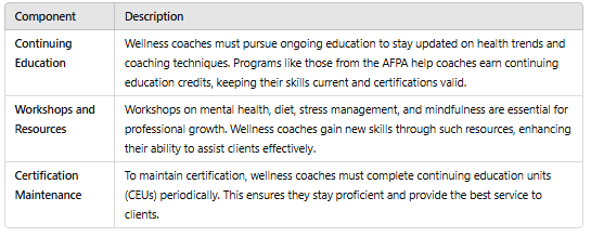 Continuing education is essential for wellness coaches to stay current with the most recent advancements in healthy living strategies and fundamental coaching skills. By participating in different programs like those provided by the AFPA, these professionals can obtain continuing education credits that enhance their credentials.