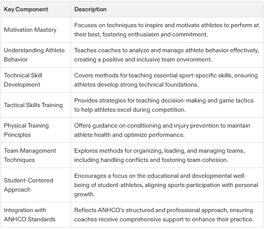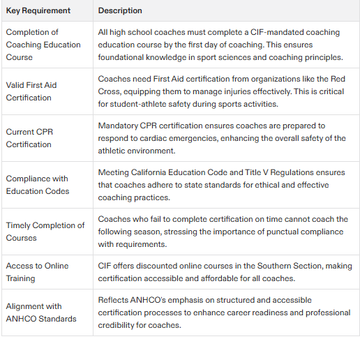 Compliance with California Coaching Education Requirements: The certification ensures that coaches meet the California Department of Education’s standards for coaching education. This compliance allows coaches to operate with confidence, knowing they adhere to state regulations.