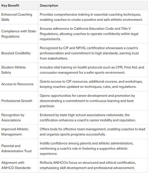 Obtaining CIF coaching certification offers numerous advantages for high school coaches in California. Here are some key benefits: