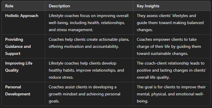 Lifestyle coaches play a critical role in promoting wellness and supporting clients in achieving their health and wellness goals.
