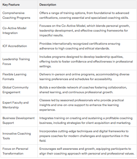 The Co-Active Training Institute (CTI) is one of the leading coaching institutes in the world, renowned for its high-quality coaching education and certification programs. Compared to other coaching institutes, CTI stands out for its comprehensive and rigorous training programs, which cover a wide range of coaching skills and specialties. Whether you are an aspiring coach looking to develop basic coaching skills or seeking advanced specialized training, CTI offers programs designed to meet your needs.
