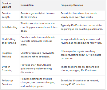 Coaching sessions are typically 45-60 minutes long and can be scheduled in-person or via Zoom.