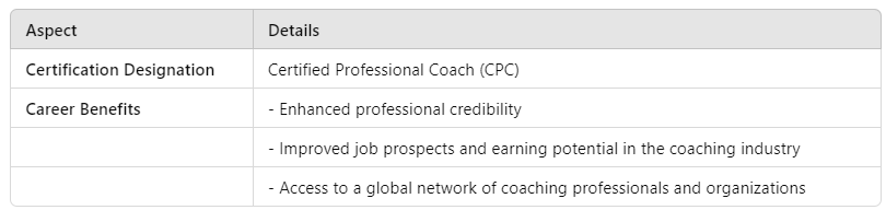 The program enhances professional credibility through the Certified Professional Coach (CPC) designation, significantly improving job prospects and earning potential in the coaching industry.