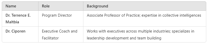Drawing on Dr. Maltbia’s wealth of knowledge and experience in coaching Enhances participants’ educational experiences within the program, equipping them with essential skills for higher-level coaching roles.