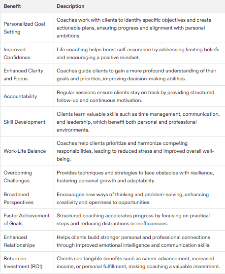 Life coaching can lead to increased confidence, clarity, and motivation.