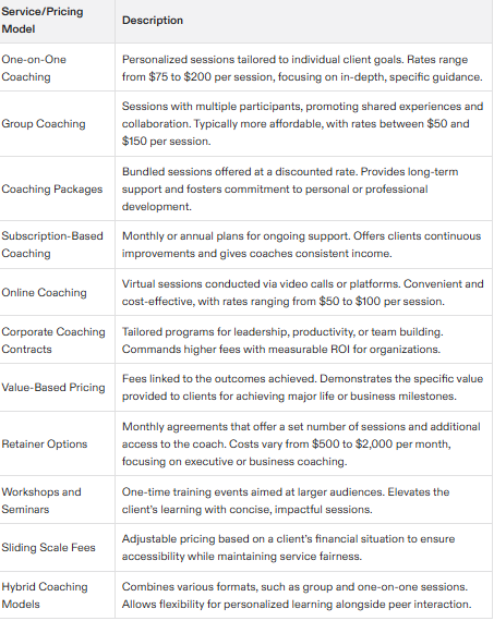 The goal is to strike a balance between profitability and client accessibility, ensuring that clients receive high-quality coaching services at a reasonable price.