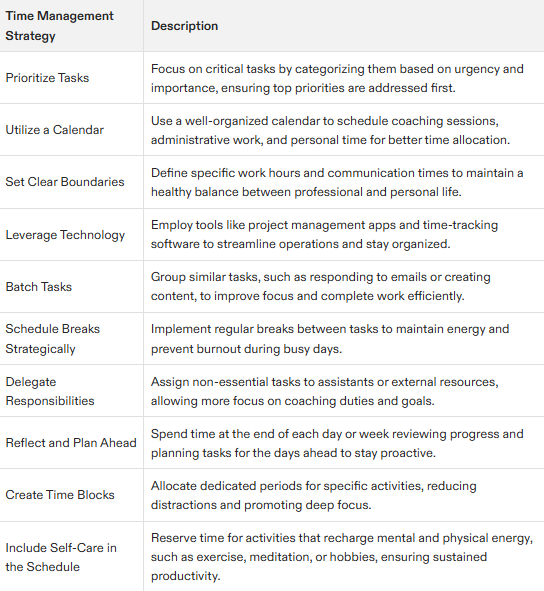 Effective time management is crucial for life coaches to balance their work with multiple clients, administrative tasks, and self-care activities. Here are some time management strategies that life coaches use: