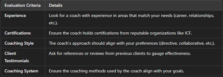 Evaluate the coaching system the coach employs to ensure it aligns with your needs and goals.