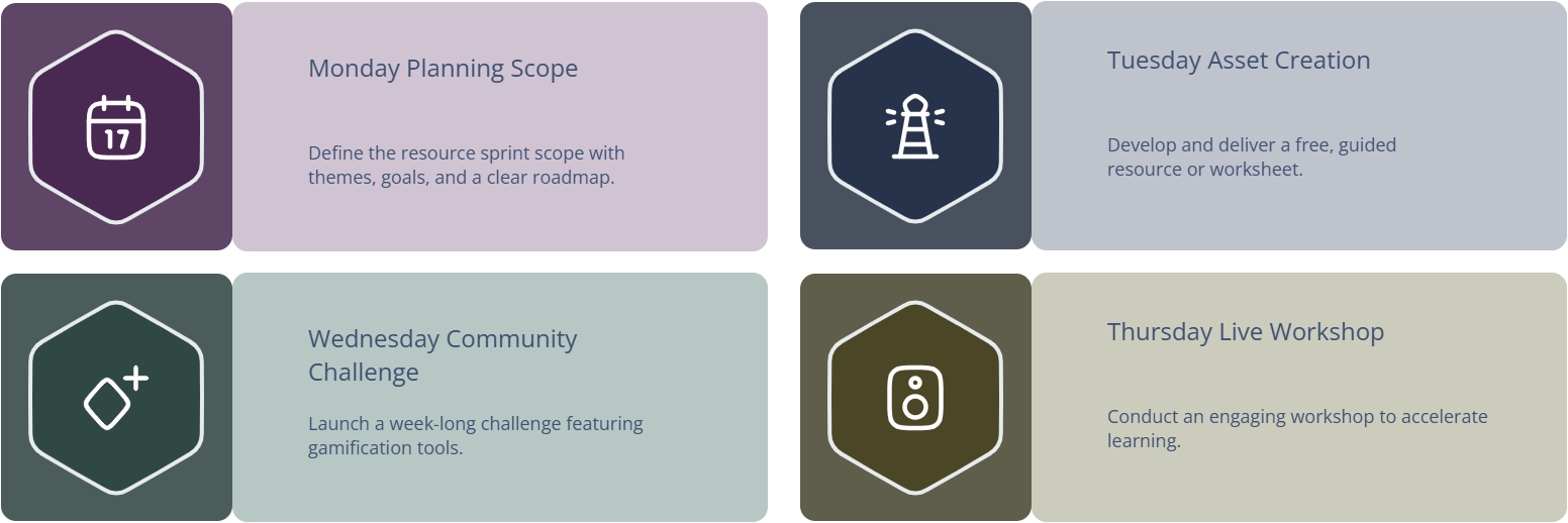 Wednesday – Run a Challenge. Launch a 5–7 day sprint with gamification tools inside your community.