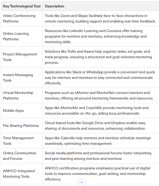 By leveraging these technological tools, mentors can enhance their mentoring practices, making the process more efficient, effective, and accessible.