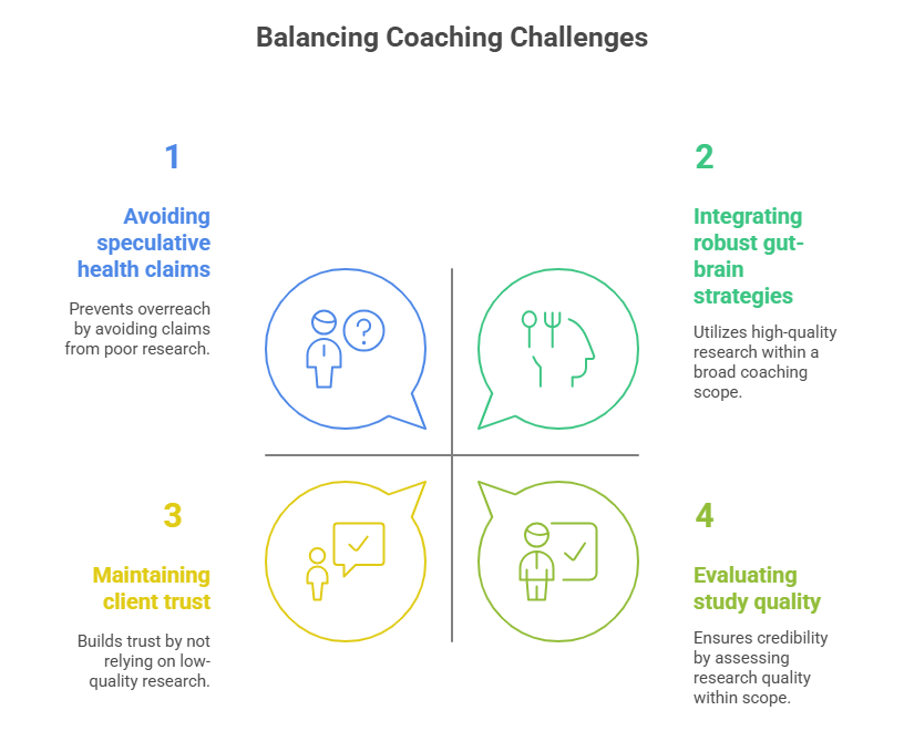 While the gut-brain axis offers powerful leverage for transforming client health, it’s also a landscape riddled with challenges and misconceptions. For coaches to navigate this terrain effectively, they must develop critical thinking skills, stay updated with evolving science, and avoid common pitfalls that can derail client progress and undermine credibility.